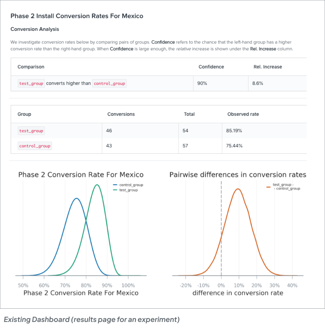 The dashboard was catered towards data scientists who have the technical understanding of the statistical term used and not for other experiment observers. Terms like ‘Confidence level’, ‘inconclusiveness’ of an experiment were misunderstood.